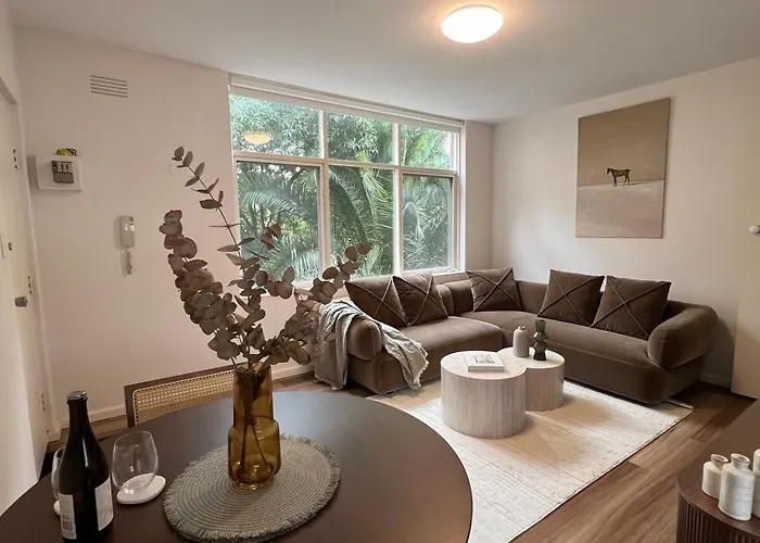 Geniet van een wandeling rond de Koninklijke Botanische Tuinen van Melbourne, binnen 3 km van het appartement van 70 m². Een autoritje van 15 minuten brengt u naar de Eureka Tower.